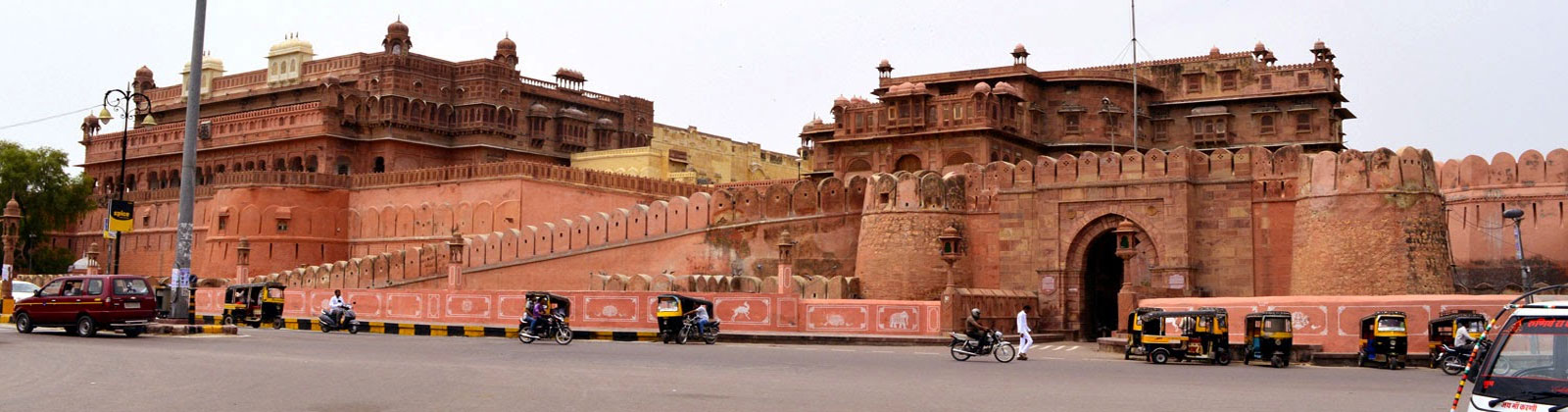Elle est une ville fortifiée, protégée par une énorme forteresse, composée de ruelles étroites et de havelis dont les façades sont sculptées dans le grès rouge. Visite du Fort Junagarth. Siège des maharajas de Bikaner durant des siècles. A quelques distances de Bikaner, le temple Shri Karni Mata, dédié au culte des rats. 190 km 4 heures de rout