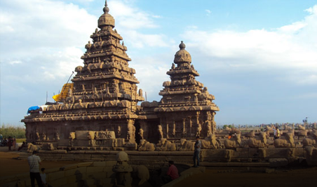 Puis retournez à l'hôtel à Mahabalipuram. À Mahabalipuram, admirez les temples creusés dans la roche (notamment les 5 Rathas), le « Shore Temple » sur la plage (Temple du Rivage), et l'immense bas-relief qui représente la Pénitence d'« Arjuna ».